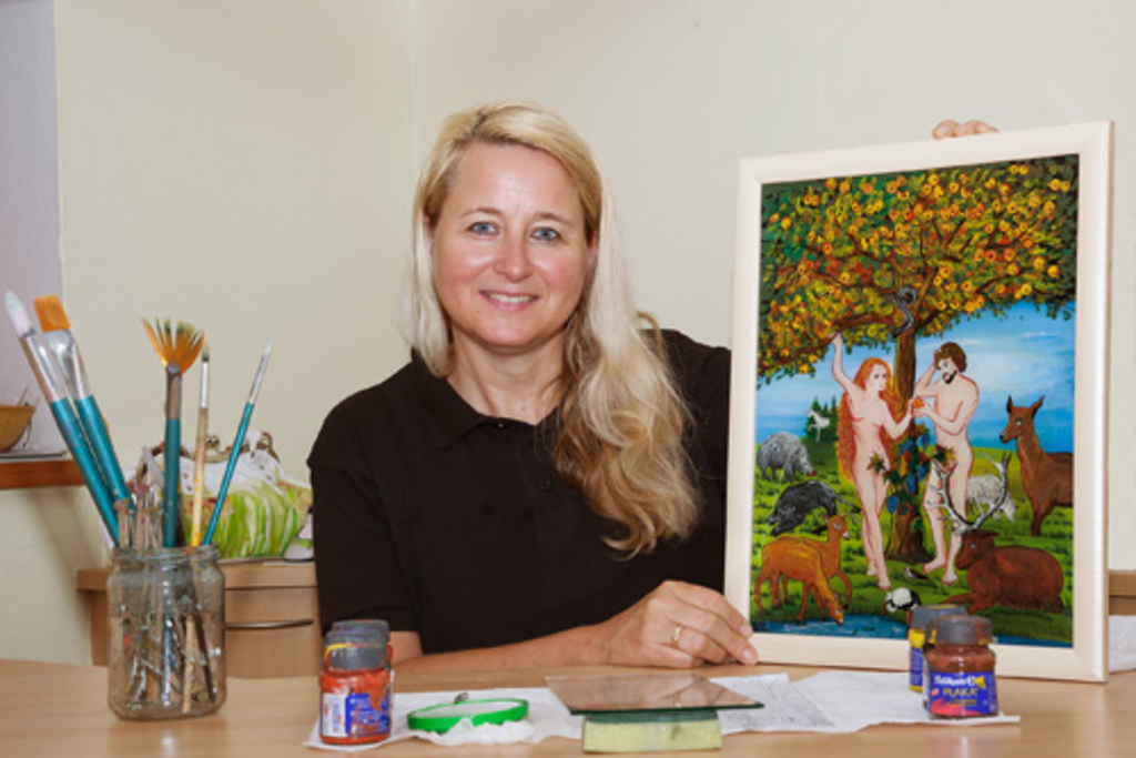 Im Altstadt-Atelier wird auf Auswahl und Qualität der verwendeten Materialien höchster Wert gelegt; gemalt wird auf Holz, Glas, Keramik, Stein und Alublech. Besonders stolz ist Manuela Eibensteiner auf die Auszeichnung "Mühlviertler Handwerksstube": "Das bestätigt den Weg zum Kunden, der bei der Erzeugung dabei sein und mitgestalten kann. Unser Handwerk soll leben und an die Menschen weitergegeben werden."