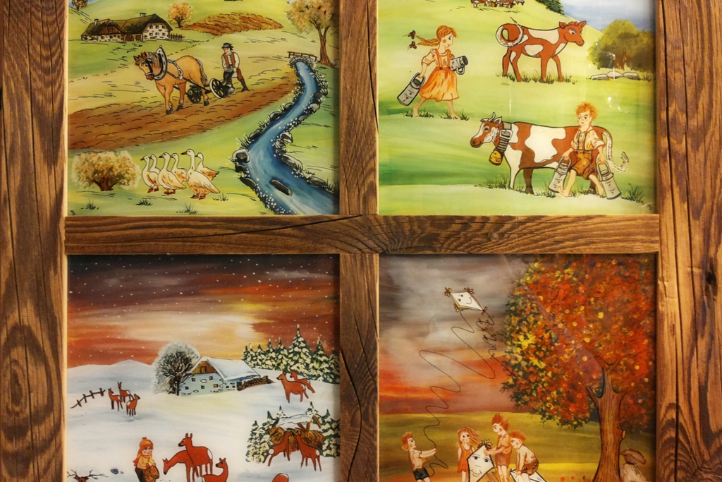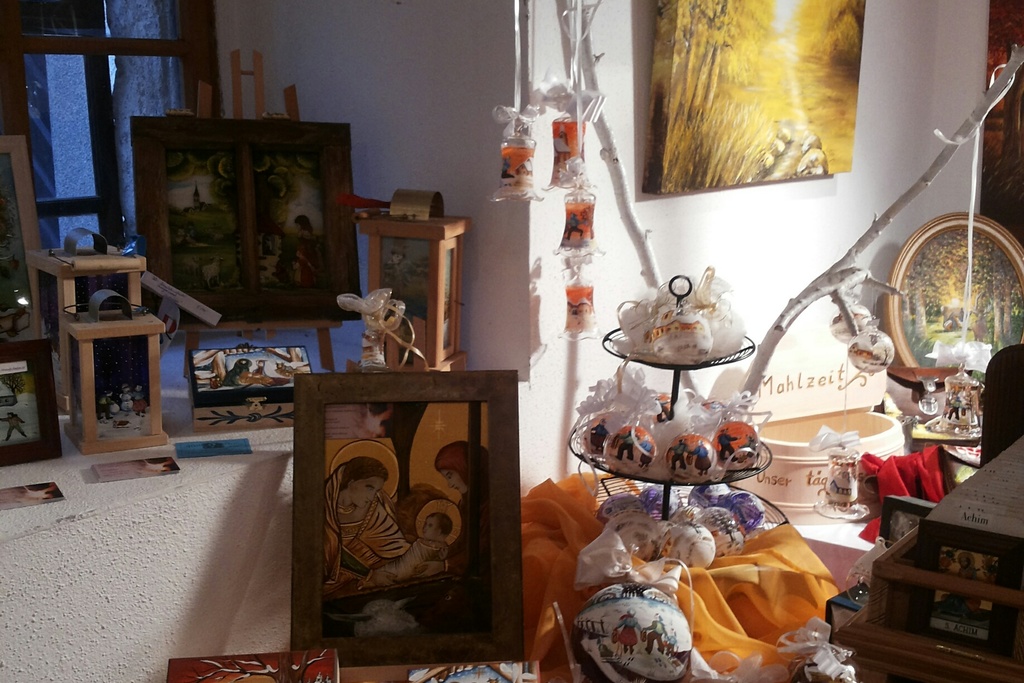 Die Namenspatrone werden nach 200 Jahren alten "Rissen" gefertigt. In der Handwerkstube finden Sie einzigartige Unikate von Bildern, Hinterglas-und Wanduhren, Glaskugeln, Glasglocken und Glaspokale ebenso wie Holzwaren, Keramikwaren, bemalte Kerzen, Keramik-und Glasschmuck und Mühlviertler Granitschmuck. Auch persönliche Artikel wie etwa Milchkannen, Holzschaffeln oder Fensterscheiben werden auf Wunsch bemalt. Das individuelle Produkt steht im Vordergrund, dank erstklassiger und proffessioneller Ausführung wird jedes Handwerkstück ein Unikat.