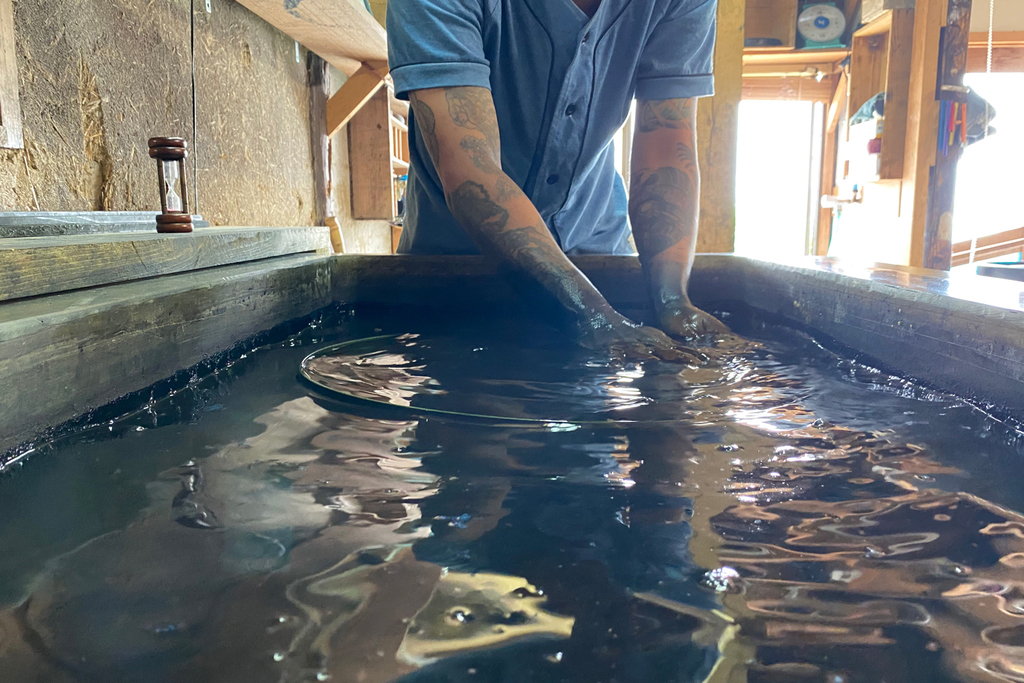 The technique utilizing veneer, known as 'Kousenbari' (veneer inlay), is truly an art form of wood. This approach allows for captivating expressions that go beyond what can be achieved with solid wood, all the while enjoying the beauty of the natural wood grain. Of course, it is also possible to dye this veneer with indigo, adding yet another dimension to Mori Kougei’s craftsmanship.
