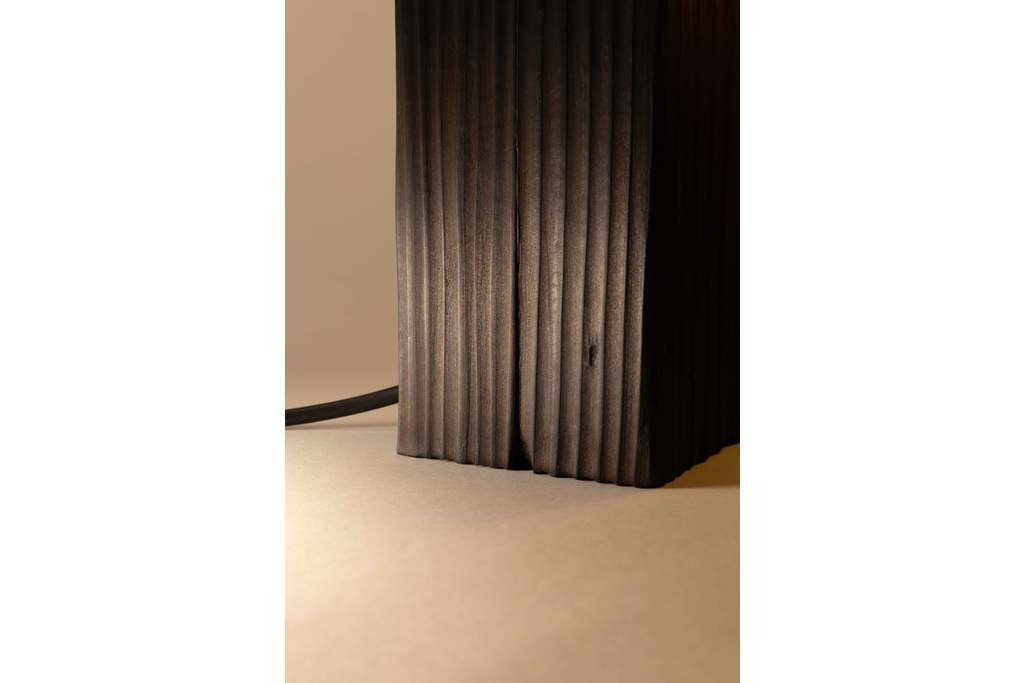 Yakisugi (japanisch: verbrannte Zypresse) wird seit Jahrhunderten in der Architektur eingesetzt, um Holzstrukturen zu schützen und hervorzuheben. Meine eigene Interpretation nutzt die erosiven Eigenschaften des Feuers, um bestimmte scharfe Kanten bewusst zu mildern, während andere erhalten bleiben.