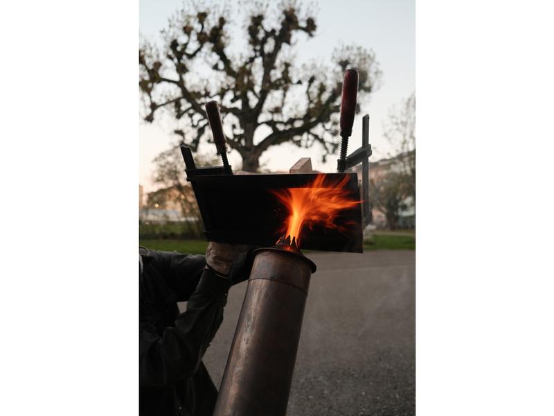 Fractions ist eine sich stetig weiterentwickelnde Kollektion sinnlich gebrannter Holzobjekte. Jedes Stück ist eine individuelle Antwort auf Form und Struktur eines jeweiligen Restholzes. Die Eingriffe in das Rohholz werden auf ein Minimum reduziert; Funktion entsteht durch gezielte Holzverbindungen, während Haptik und Langlebigkeit durch Feuer verstärkt werden.