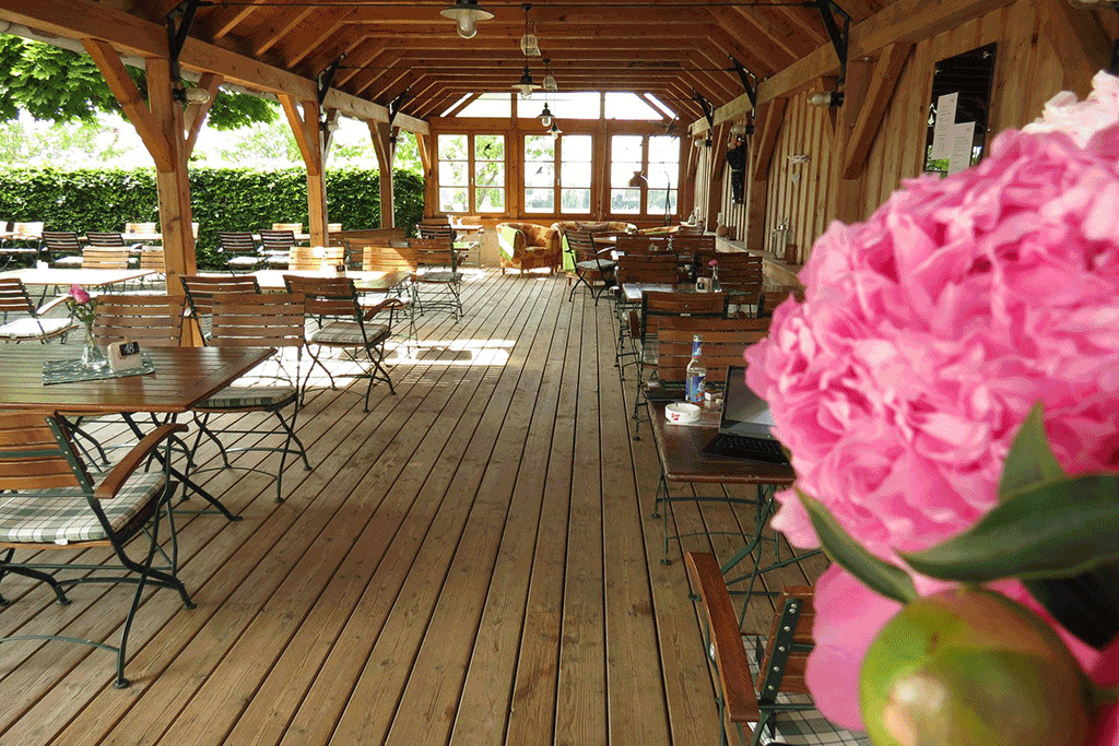 Das auf einer Anhöhe gelegene Gasthaus wurde vom Wiener Architekten Hermann Czech mit viel Feingefühl virtuos restauriert. Ursprüngliches blieb ursprünglich, das Ambiente im Inneren mit seiner markanten Raum- und Farbgestaltung wirkt einladend und gemütlich. Modernste funktionelle Standards sind eine Selbstverständlichkeit. Der großzügige Gastgarten mit einem typischen Innviertler Salettl, das man auch beheizen kann, lädt ein zum Verweilen an schönen Tagen und lauen Sommerabenden – vor allem, wenn von der Barbecue-Station nebenan feine, verführerische Düfte die Nase umspielen, denen man einfach nicht widerstehen kann.