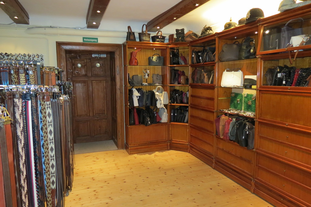 Neben 4000 bis 5000 Gürteln (auch als Spezialanfertigungen und in Übergrößen) aus Schweins-, Rinds-, Bison-, Kroko-, Eidechsen-, Hai-, Strauß- und Hirschleder mit insgesamt 500 verschiedenen Gürtelschnallen komplettieren Damentaschen, Geldbeutel und -börsen, Hosenträger, Gürtelschnallen und Tischsets aus feinstem Nappaleder, Blankleder oder Velourleder das Sortiment.