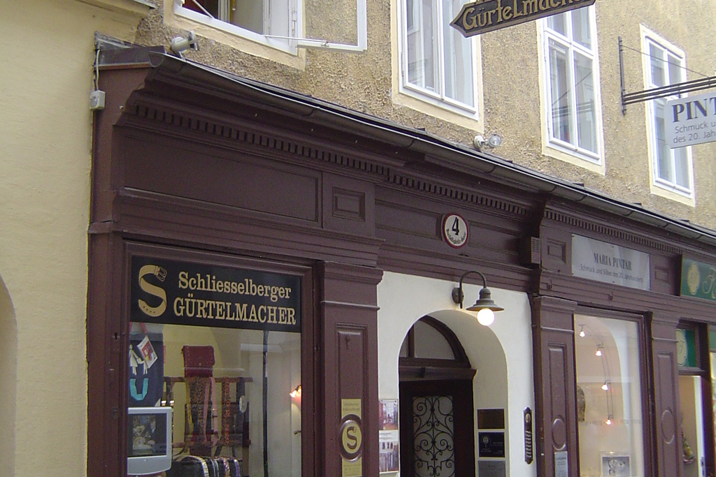 Auch wenn's um den Standort geht, wahrt Meister Schliesselberger die Tradition: Unweit des pittoresken Gürtel- und Lederladens in der Dreifaltigkeitsgasse 3 verlief früher die Salzburger Stadtmauer. Und hier an der Stadtgrenze lag auch einst das Gerberviertel. Rochen die trocknenden Felle damals gar fürchterlich, wie sich auch Mozart in einem Brief beschwerte, so lädt heute bei Gürtelmacher Schliesselberger der Duft frischen Leders ein, einzutreten und in einem riesigen Sortiment an Gürteln und anderen Lederwaren zu goustieren. Die integrierte Werkstatt erfüllt auch individuelle Wünsche und nimmt Reparaturen von Gürteln, Taschen und Koffern vor.