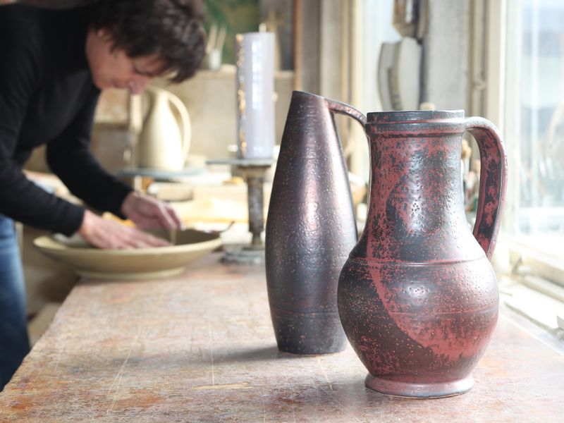 Manche der Töpfertechniken sind beinahe in Vergessenheit geraten. Eine davon ist das Reduzieren von Kupfer auf die Glasuroberfläche beim Abkühlen unmittelbar nach dem Brennvorgang. Die Rezeptur dazu hat sich Silvia Pasch in langen Versuchsreihen wieder neu entwickelt. Es hat sich gelohnt – Kupferkeramik übt nicht nur auf den Kenner ungeahnte Faszination aus.