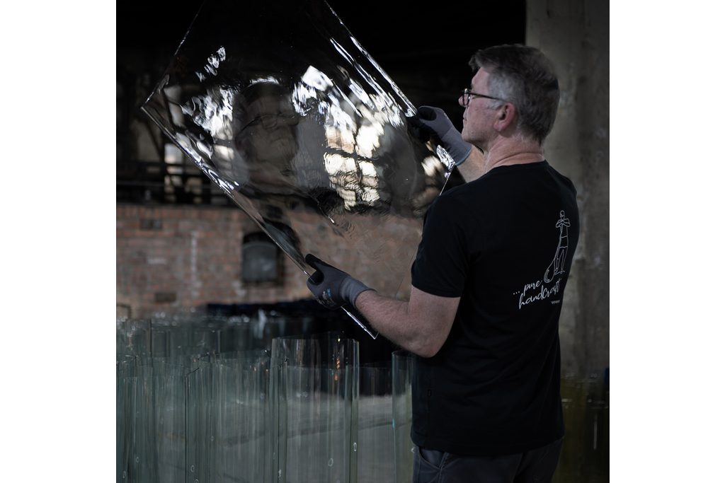 Wir sind die Glashütte Lamberts in Waldsassen (Bayern) – eine familiengeführte Manufaktur, die mundgeblasenes und handgefertigtes Flachglas nach traditionellen Verfahren herstellt. Jede Tafel entsteht Tafel für Tafel in echter Handarbeit: sichtbar in der lebendigen Oberfläche, feinen Schlieren und kleinen Luftbläschen – genau diese Merkmale geben unserem Glas seinen unverwechselbaren Charakter.