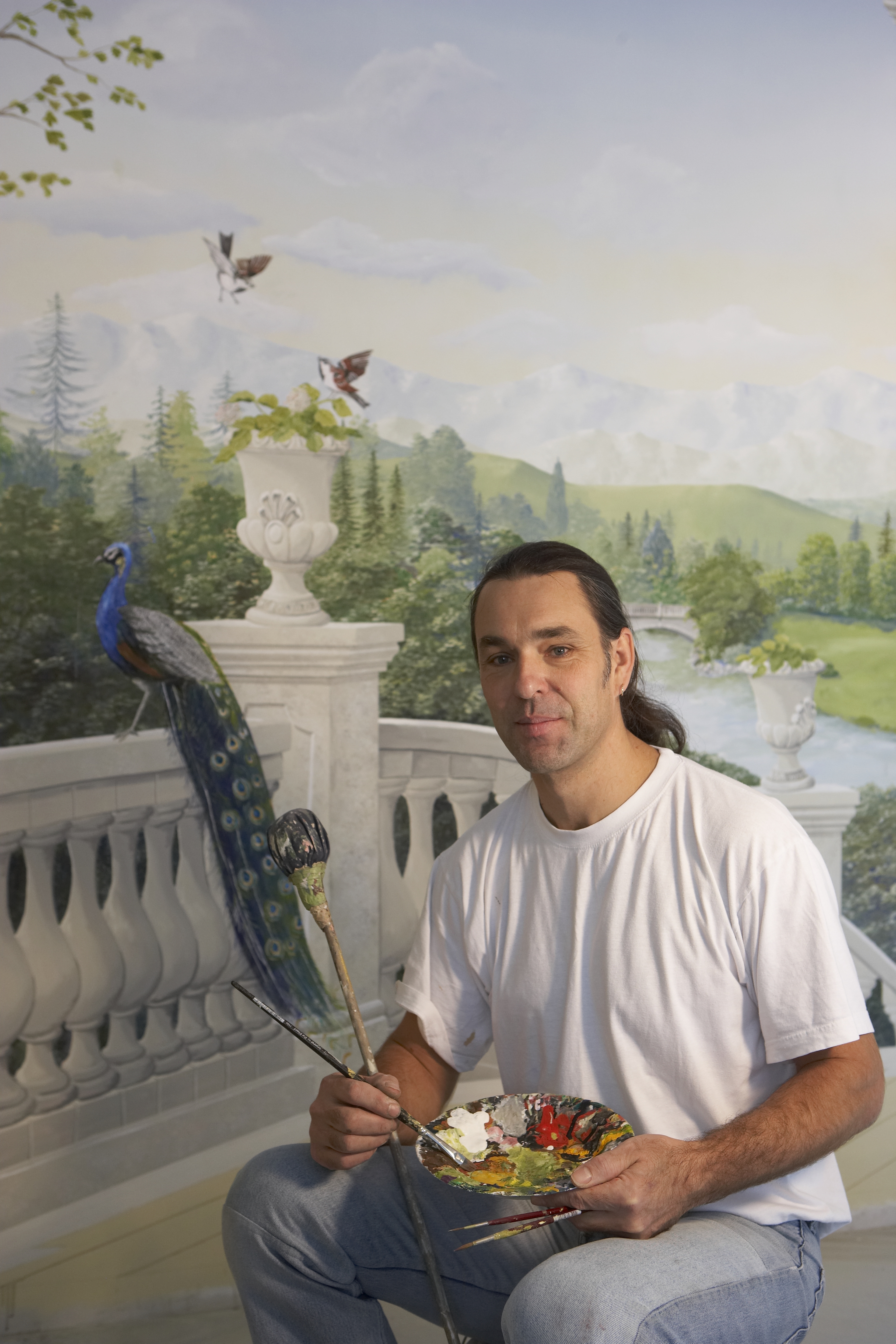 Trompe-l'œil, Deckenfresken, Grisaille (Graumalerei), Stucco lustro (Kalk-Marmor-Spachteltechnik), Tadelakt, Lasuren, Stuckarbeiten, schablonieren, marmorieren, Patinieren, Kalligraphie, historische Deckengemälde, Sonnenuhren; Farbberatung, Farbplanung, Farbdesign
