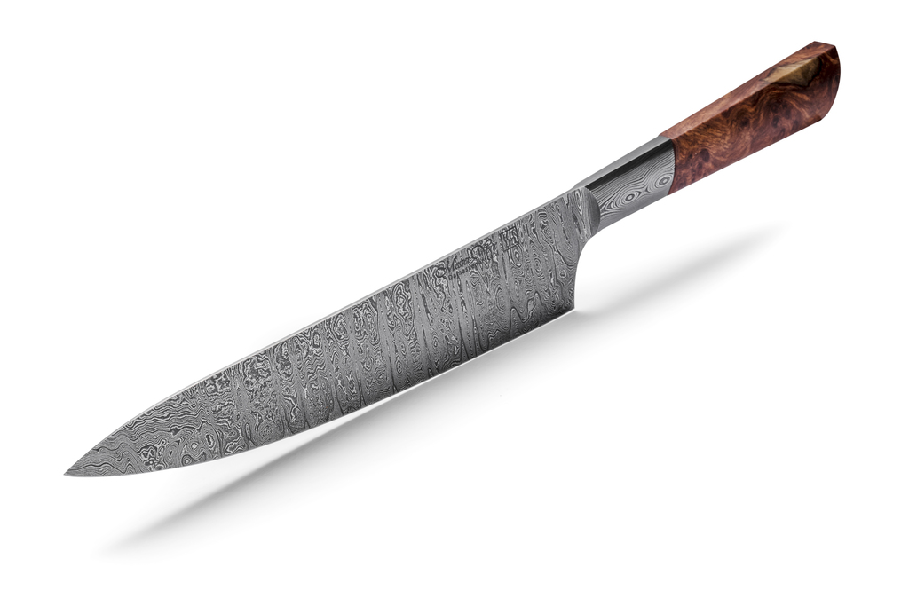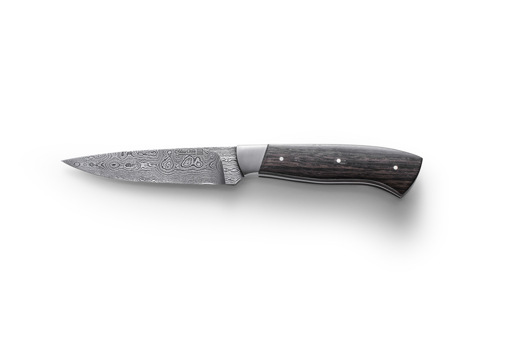 Der handgeschmiedete Damast zeichnet sich besonders durch seine hohe Schnitthaltigkeit und Zähigkeit aus.