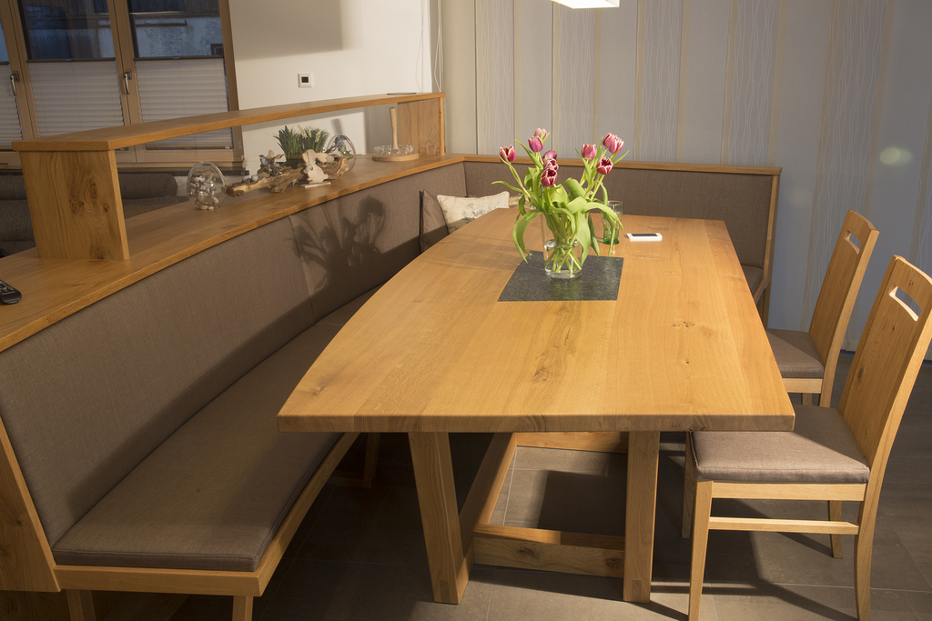 Was 1984 mit Johann Seidl als ein Mann-Betrieb begann, hat sich heute zu einem Tischlereibetrieb mit zwei Meistern, drei Gesellen und einem Lehrling entwickelt. Das Handwerksprinzip der kleinen, feinen Tischlerei in Kuchl ist so einfach wie überzeugend: Alles wird von Seidl so geplant, gefertigt und montiert, als würde er’s für die eigenen vier Wände machen. Über 20 Jahre Erfahrung, individuelle Beratung bis hin zur 3D-Planung und maßgerechte Einzelfertigung garantieren eben Wohn(t)räume aus einer Hand – stilsicher und funktionell.