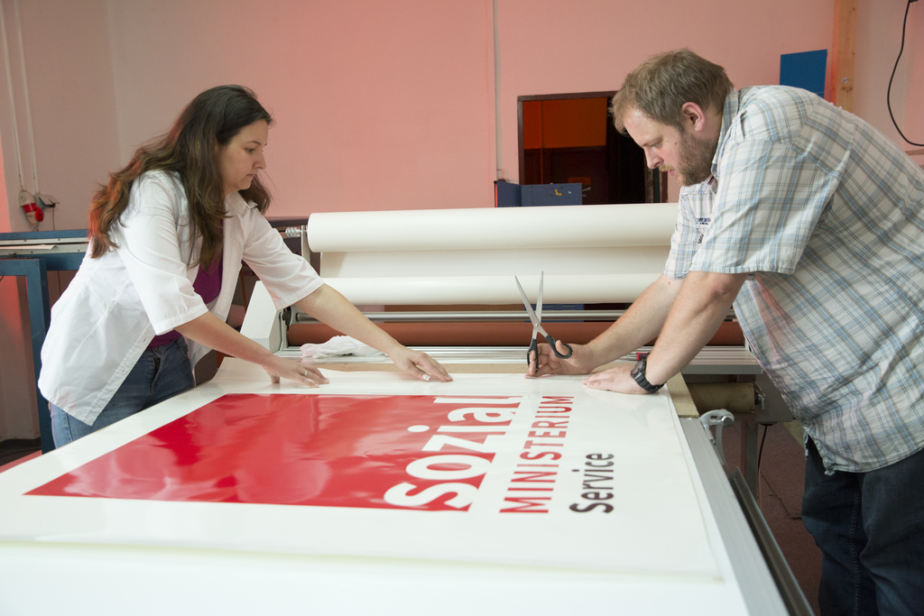 Kunstdruck, Serigrafie (Siebdruck/Kunstdruck), Schilder, Kleber, Klebeschilder (www.klebeschilder.at), bedrucktes Glas, Druck auf Leder, Textildruck, T-Shirt, Druck auf Metall, Bautafeln, Sticker, 3D-Kleber, Frontplatten, bedruckte Gehäuse, Spielautomaten-Scheiben, Displays, Planen, Banner, Siebdruck-Workshops.
