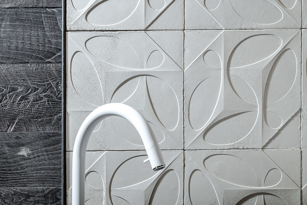 KARAK-tiles unite opposites into a well-grounded entity. Traditional Japanese Raku-firing technique meets contemporary ornamentation in the ceramic workshop in Vorarlberg, Austria. Karak produces goods exclusively to order in a small-scale, artisanal process. Adapted to architecture and individual customer requirements, each tile literally ‘walks through the fire’ and develops its own unique character. Regardless of whether you order one tile or one hundred, each tile is unique and can never be replicated. Whether for floors or walls, cladding for a tiled stove or as a room-dividing screen: The handcrafted process fills every surface with life.