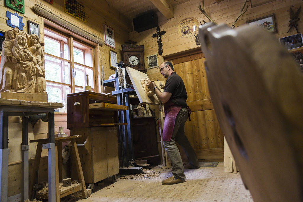 Bergauf, im Tal der kleinen Ybbs, über eine kleine Brücke, mit Tropfen aus Eis verziert, führt der Weg zur Werkstatt von Christian Fahrenberger. Hier, sagt er, kann er abschalten und tun, was er will. Und was er will, das ist Holzskulpturen anfertigen. Mit Vorliebe bewegt sich der Holzbildhauer im sakralen Bereich, er erschafft Kruzifixe ebenso wie lebensgroße Statuen. Ein besonderes Bedürfnis ist es dem Niederösterreicher dabei, auf die Wünsche seiner Kunden einzugehen, die von der ersten Zeichnung über das Wachsmodell hin zur fertigen Figur stets involviert sind.